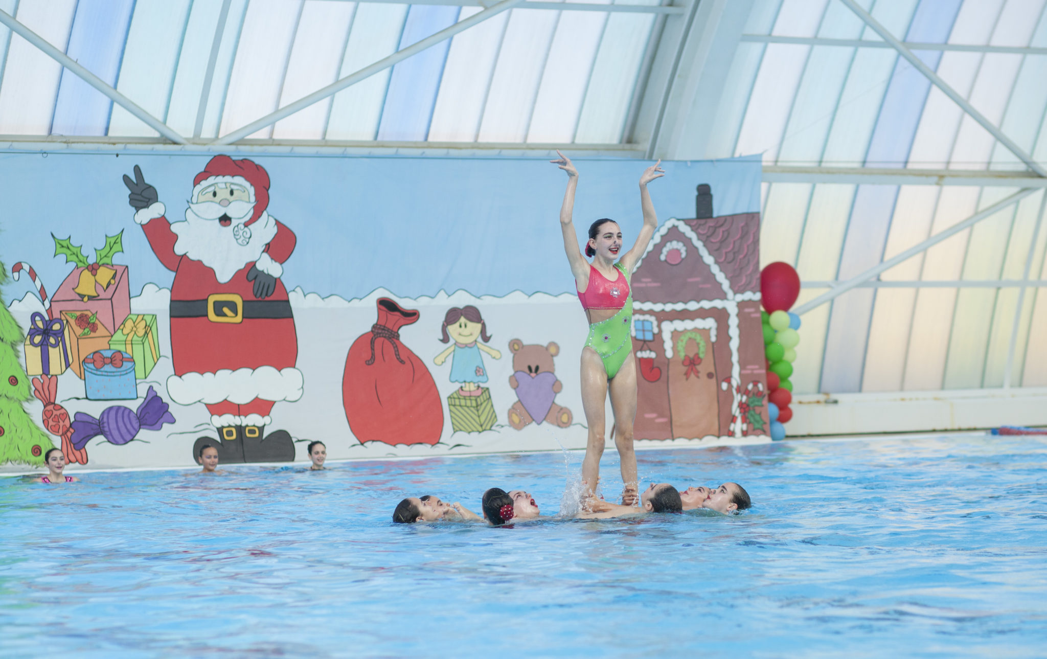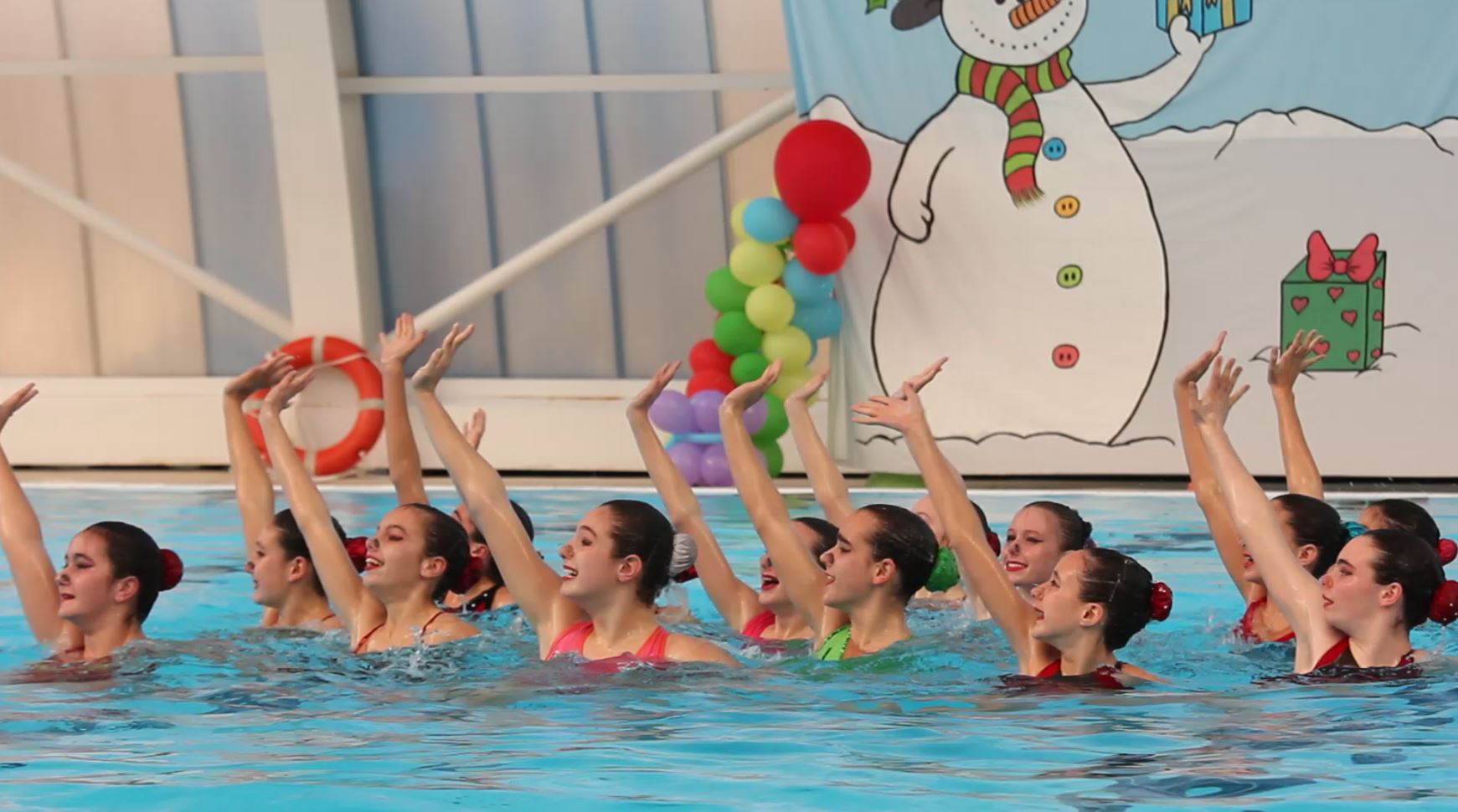 Este 16 de Diciembre hemos celebrado nuestra tradicional exhibición de navidad donde nuestras nadadoras mostraron al público asistente las rutinas que están entrenado actualmente. Además junto a estas, realizaban la clásica rutina de navidad donde todas nuestras nadadoras tanto de competición como de escuelas se unen con motivo de felicitar las fiestas navideñas. Desde el club esperamos que les haya gustado a los asistentes y esperamos verles en la edición del año que viene.